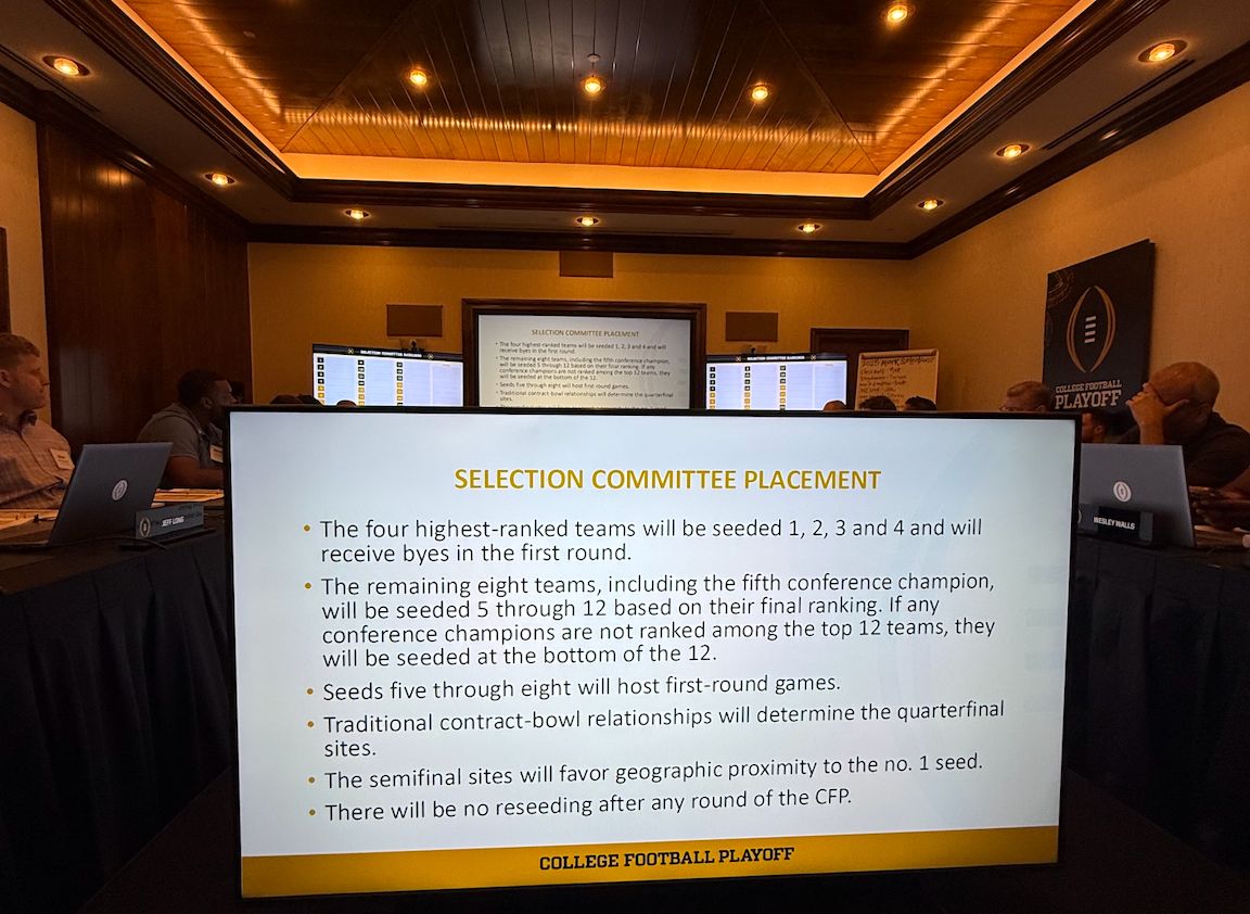 Once inside this mostly obscure, almost-hidden room prepare for the most important task in all of college football: Ranking the teams, today and every Tuesday until the ultimate Sunday in December, that will comprise the College Football Playoff’s top 25 and, ultimately, its 12-team field for the 2025 iteration.