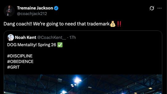 Well, Jackson replied to the post with "Dang coach!! WE're going to need that trademark ๐ฐ !!"