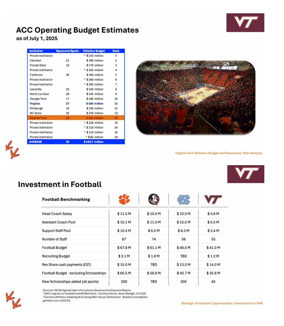 Virginia Tech's Board of Visitors will meet later this month to consider a $229 million budget increase for Hokie athletics over a 4-year period, beginning with Fiscal Year 2026. Over half, the school says, will come from donors, but the school plans to increase athletics funding by more than $10 million per year, an average of nearly $10 million per year in "bridge funding" and $21 million in total in student fees.