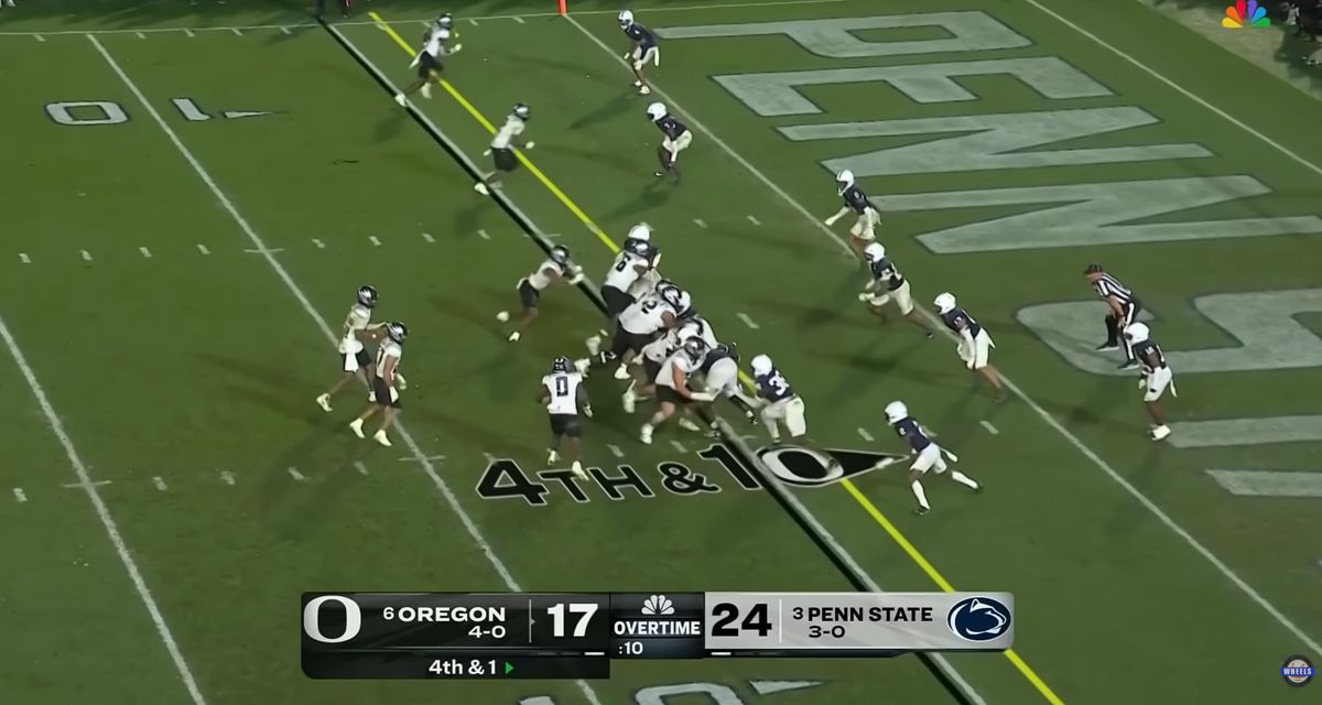 Before we move forward, it's interesting to pause and think about how different the world might look today if Dante Moore had tripped over his feet here.