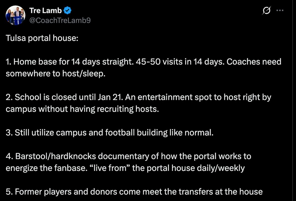 Tulsa's series is set to run the full length of that portal window being open, so here's to hoping for some radical transparency on the process, and maybe Tulsa's plan to have cameras everywhere will keep Power Four programs from trying to poach their roster.