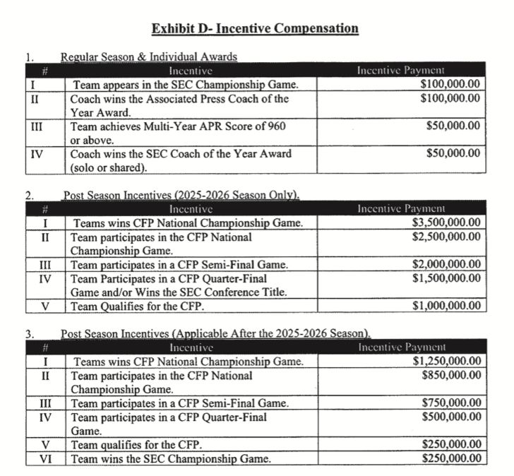 Elko's bonus structure ranges from $50,000 for an SEC coach of the year award to $1.25 million for a national championship. He would have made $3.5 million had the Aggies won the 2025 national title.