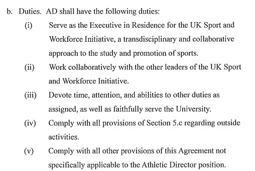 According to documents obtained by Maggie Davis of KBA-TV in Lexington, Barnhart will earn $950,000 a year in the role, which runs through Aug. 31, 2030. He would be owed the full amount of the contract if fired without cause. Barnhart is also due 10 tickets to every Wildcat football, men's basketball, and baseball game through his and his wife Connie's lifetimes.