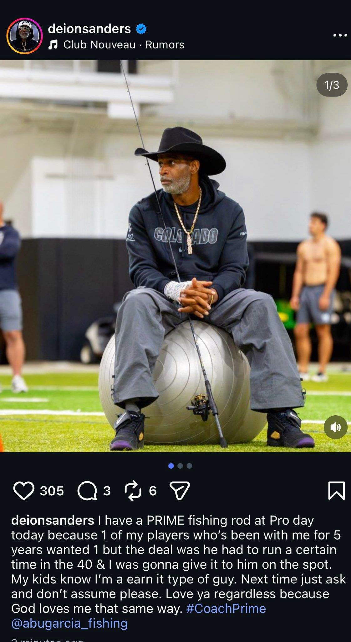 Coach Prime gone fishin' at Colorado's Pro Day ๐ pic.twitter.com/wjHK9ykqeP